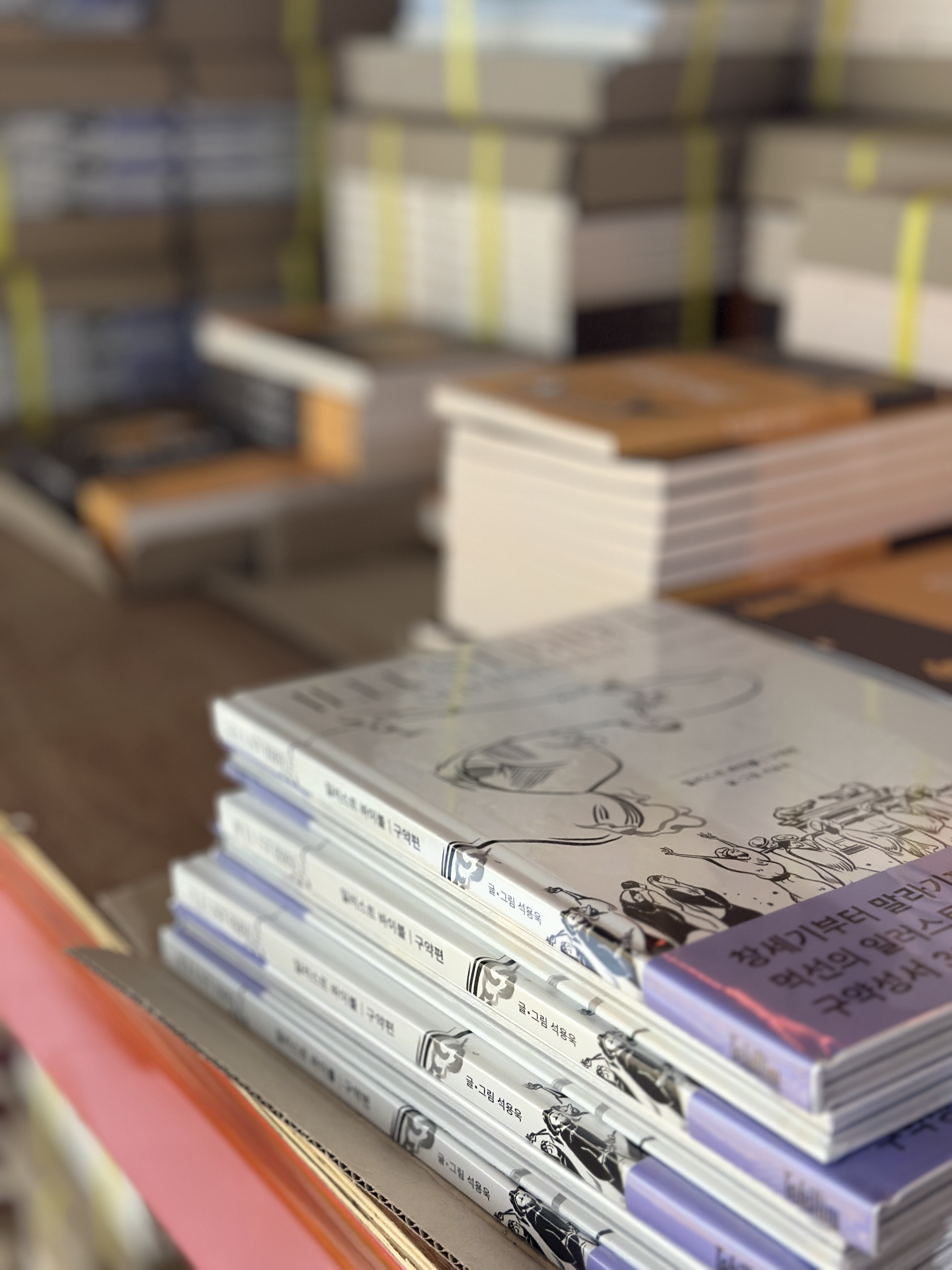 계약을 위해 방문한 창고는 파주에 있었는데요, 유통 총판사에서 운영하는 창고는 처음 가보는 것이어서 궁금한 마음으로 찾아갔습니다. 여러 출판사의 책들이 거대한 선반들에 차곡차곡 쌓여 있는 것을 보면서, 기독 출판계에 20년이나 몸 담고 있었으면서도 여전히 모르는 출판사가 많다는 것에 놀라고, 그러한 곳에서 착실하게 꾸준히 책을 출간하고 있다는 것에 또 놀라고, 제가 알지 못하는 책들이 많은 사람에게 판매되고 있었다는 것에 또또 놀랐습니다. 그러면서도 마치 룸메이트라도 된 것처럼, 같은 창고에 책이 있다는 사실에 왠지 친근하게 느껴지더라고요☺️